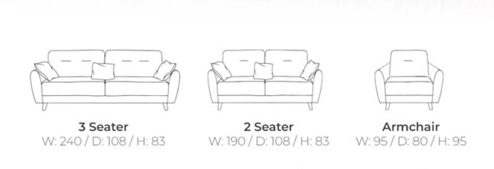 1 Seater Armchair: W: 95cm x D: 80cm x H: 95cm