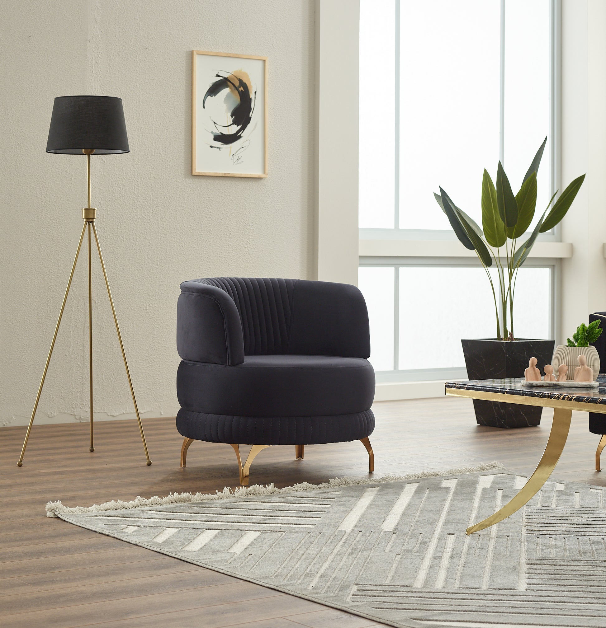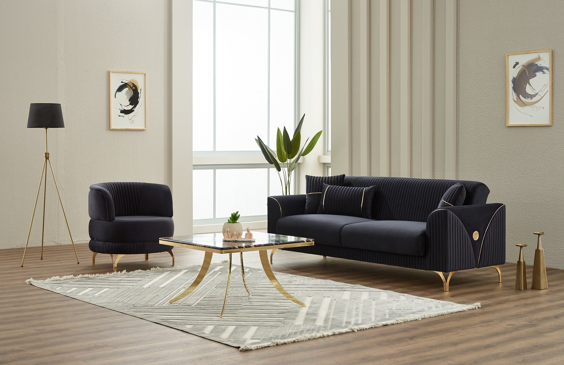 Gold Detailing: Elegant gold accents on the armrests and base for a statement finish.