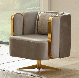 Gold Detailing: Elegant gold accents on the armrests and base for a statement finish.