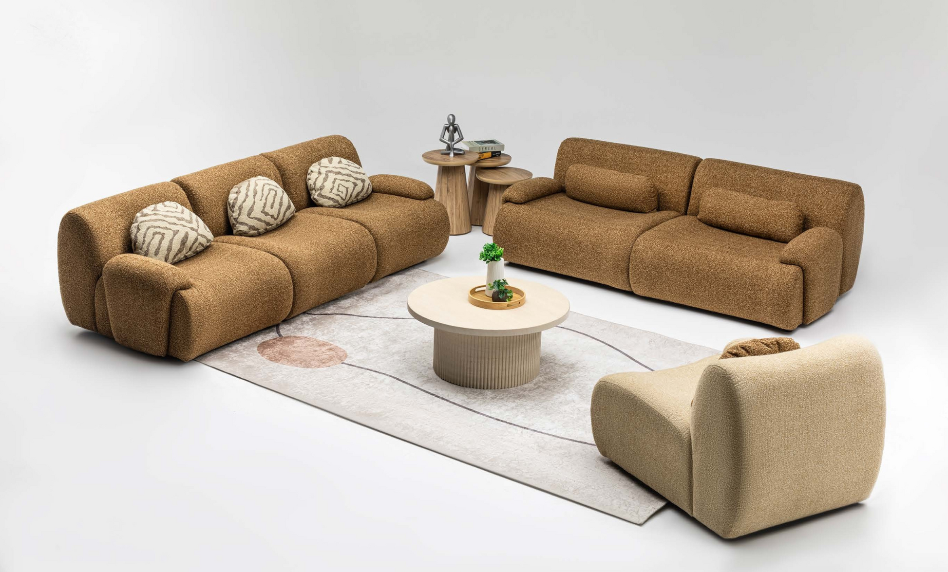 The VISION Sofa Set brings together soft contours, plush textures, and functional design for modern homes that demand both style and practicality. Imported from Turkey and exclusive to THE INTERIOR STORE, this collection is as versatile as it is visually stunning.